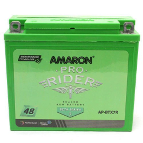 Amaron ABR-PR-12APBTX7R 7Ah 48 Month (24+24) Warranty Product Description Battery Name: Amaron Pro Bike Rider Battery Model: ABR-PR-12APBTX7R Battery Type: VRLA Battery Ah: 7 Voltage Output: 12V Series: Beta Maintenance: Zero Quality: High Corrosive & Vibration Resistance Long Life, Spill Proof