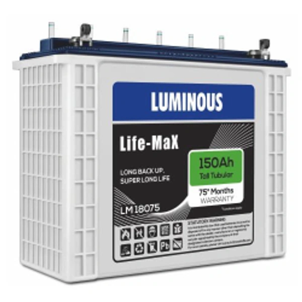 Luminous Tubular Life-Max 150 Ah Battery - Luminous LM18075 75 Month (60+35) Warranty Tall Tubular Battery for Home, Office