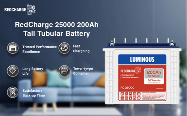 Luminous Red Charge RC 25000 200 Ah, 36 Month (18+18) Warranty Recyclable Tall Tubular Inverter Battery for Home, Office & Shops (Blue & White)